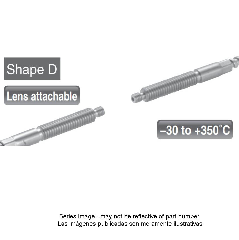 Sensores e interruptores fotoeléctricos - Fibra óptica - Unidades de fibra - Escaneo pasante resistente al calor - Recto, lente en forma de D acoplable, temperatura de funcionamiento de -30 °C a 350 °C, radio de curvatura del cable R15, longitud del cable de 2 m con corte libre, elemento Ø 1,0, tamaño mínimo detectable Ø 0,005. La distancia de detección dependerá del amplificador utilizado. Consulte las especificaciones en la sección de documentos.
