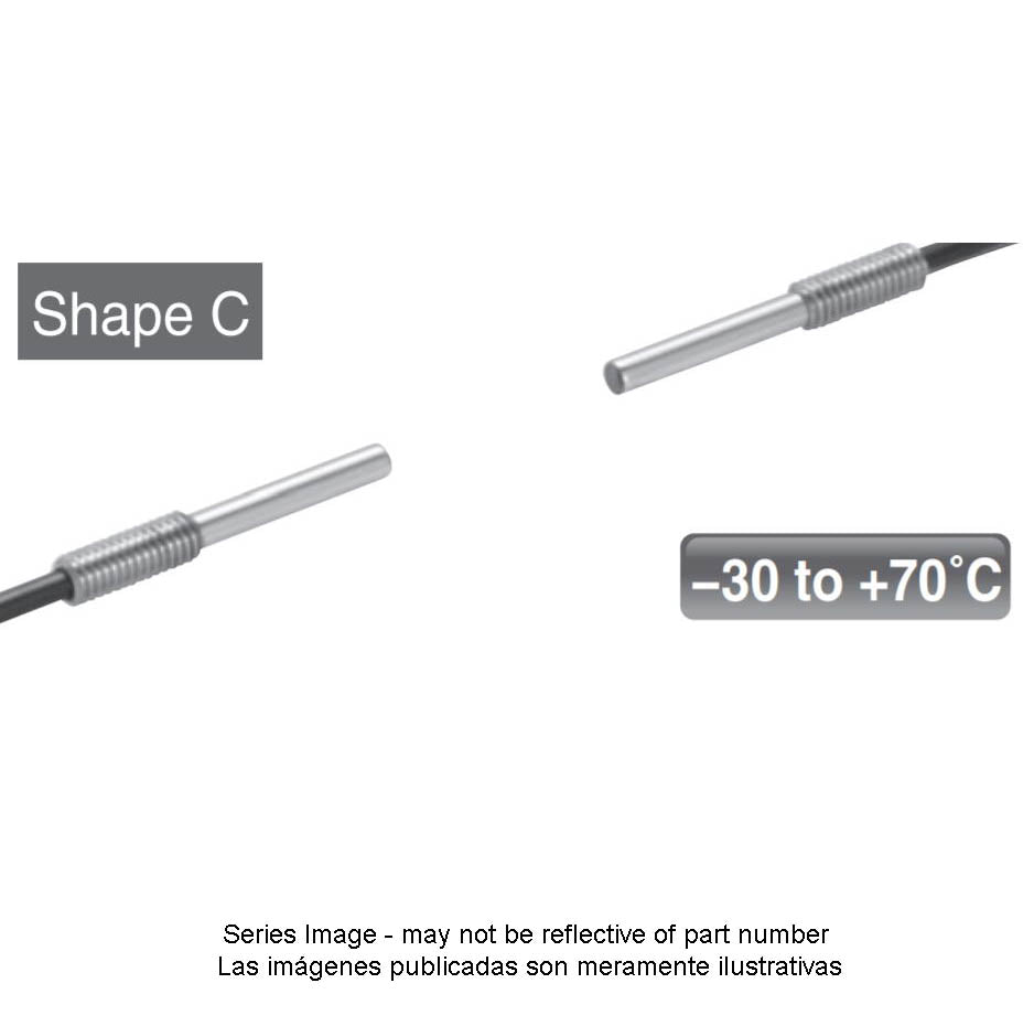 Sensores e interruptores fotoeléctricos - Fibra óptica - Unidades de fibra - Visión estrecha a través del escáner - Emisor de luz superior, ángulo direccional (medio ángulo) de 1,5°, forma B, temperatura de funcionamiento de -30 °C a 70 °C, radio de curvatura del cable R20, longitud del cable de 2 m (corte libre), diámetro efectivo de la lente Ø 2,1, tamaño mínimo detectable Ø 0,1 mm. La distancia de detección dependerá del amplificador utilizado. Consulte las especificaciones en la sección de documentos.