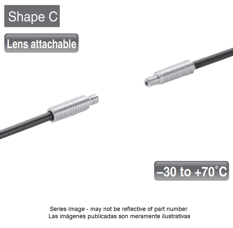Photoelectric Sensors & Switches - Fiber-optic - Fiber Units - Screw Thru Scan - Straight - M4, shape C, operating temperature -22 °F (-30 °C) to 158 °F (70 °C), cable bend radius R20, cable length 2 m free cut, core Ø 1.0, minimum detectable size Ø 0.005 mm. Sensing distance will depend on the amplifier used. Please consult specification in the documents tab.
